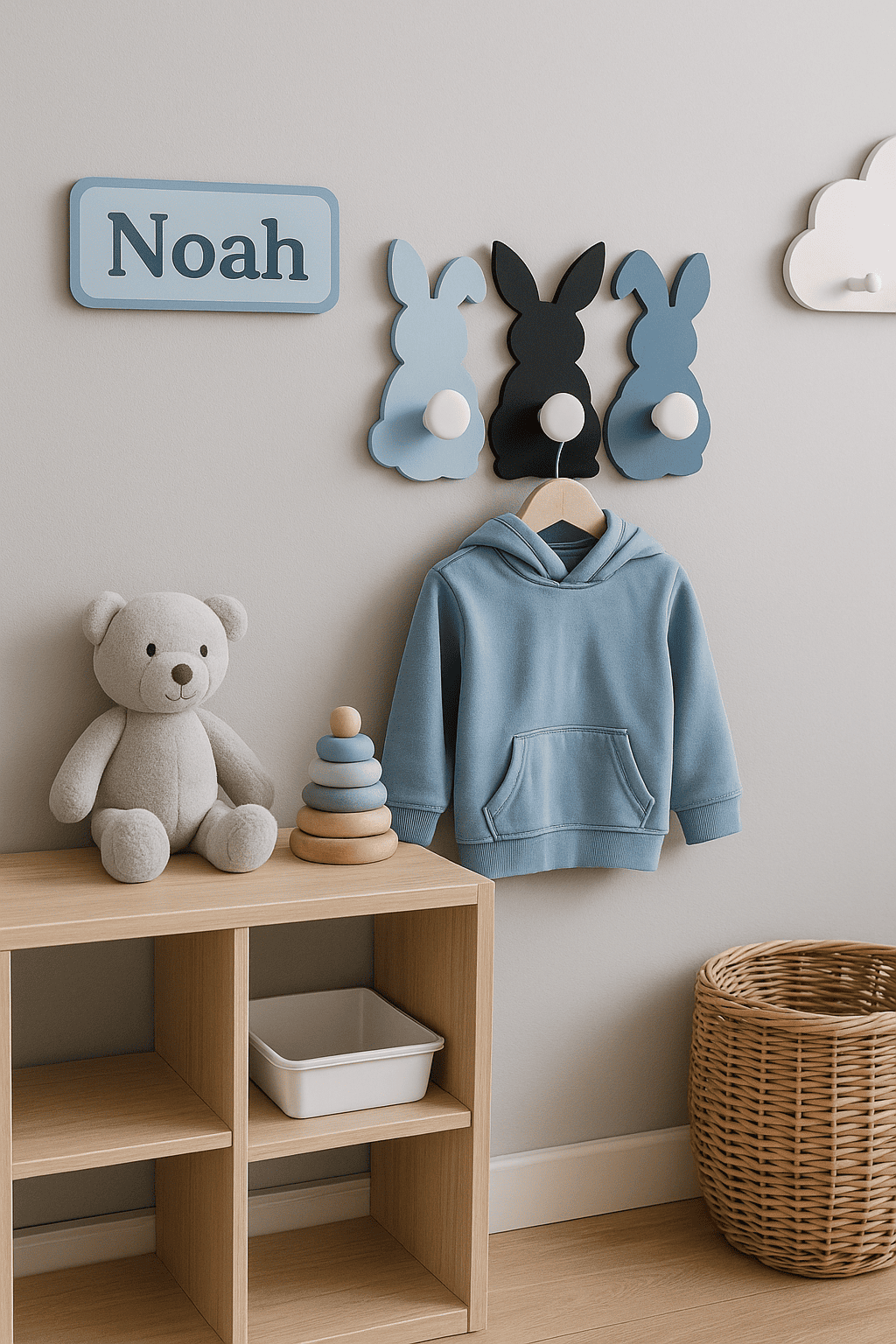 Porte-Manteaux Enfant : 2-3 patères décorées, fonctionnel et ludique.